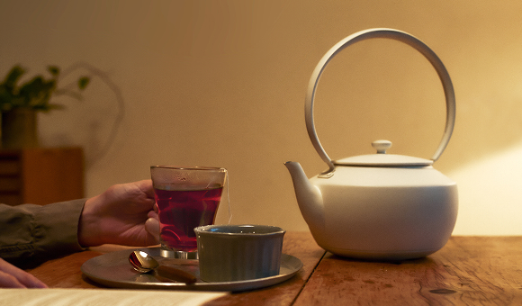 ゆらめく光と音で、安らぎの時間を印象的にする電気ケトル。50℃から100℃まで、1℃単位で温度調整が可能です。日本茶、コーヒー、ハーブティーを最適な温度で淹れることで、素材本来の香りや味わいを存分に引き出します。