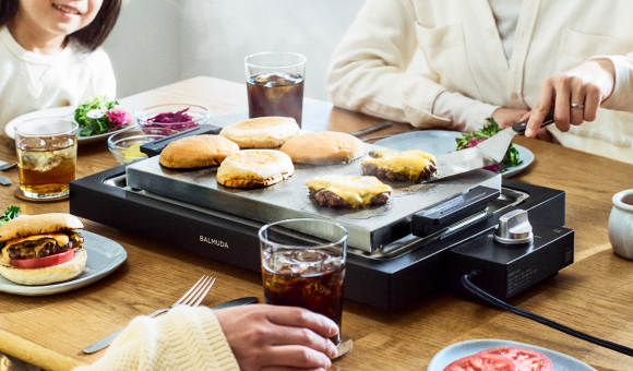 6.6mm厚の3層クラッドプレートと正確な温度制御で、さまざまな料理をプロの味わいに焼きあげます。プレート上でナイフを使って、目の前で切り分け、できたての料理をサーブ。家族や友人が集まる食事も盛り上がることまちがいなしです。