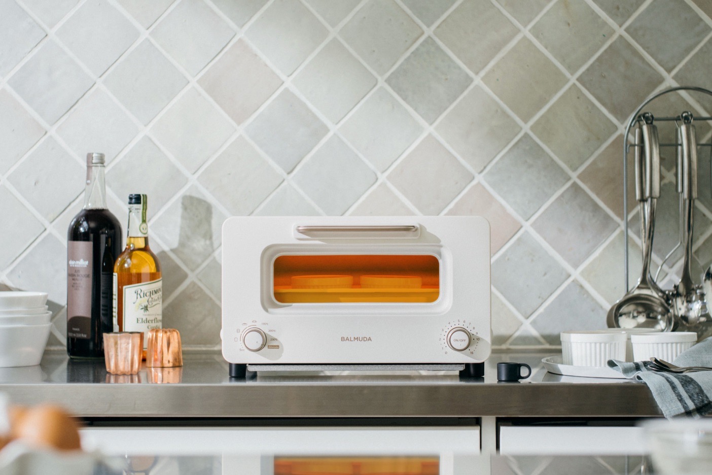 BALMUDA The Toasterの機能に加え、仕上げ焼き専用「サラマンダーモード」を搭載。パンはもちろん、料理やデザートまで。圧倒的な火力でレストランの味わいに仕上げます。特別なおいしさと、プロの焼きあがりをお楽しみください。
