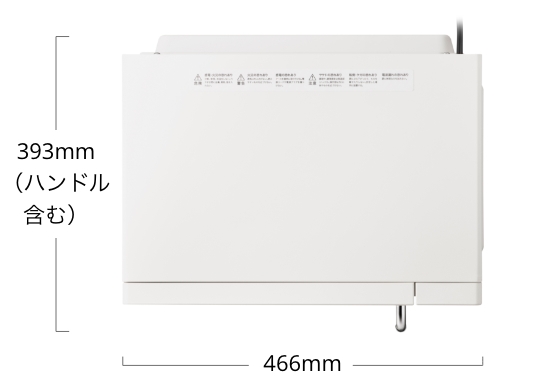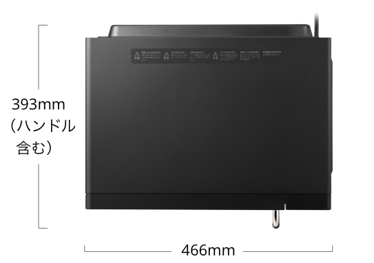 | 本体寸法 | 幅 466mm × 奥行 393mm × 高さ 295mm(ハンドル含む) 幅 466mm × 奥行 353mm × 高さ 295mm(ハンドル含まない) |