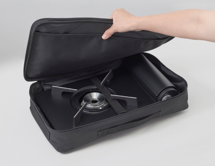 本体をピッタリと収納できる専用ケースです。内側のベルトでしっかりと固定できるので、安心して持ち運びできます。縦向きでも保管できて便利です。