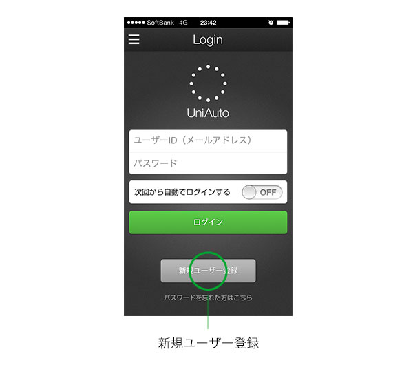 UniAutoアプリを開き、ログインできることを確認してください。これでユーザー登録は完了です。