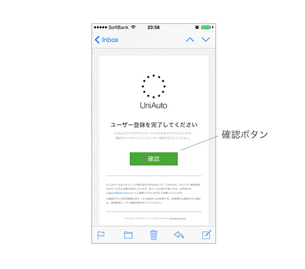 Emailアドレス宛に本登録に必要なリンクを記載したメールが届きます。メール内の[確認]ボタンをクリックします。