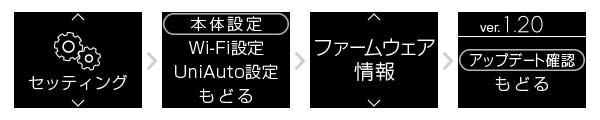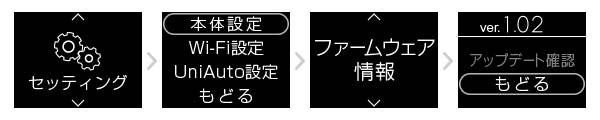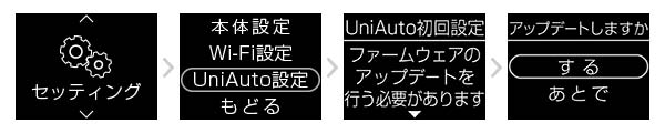 製品のメニュー選択画面を開き、[セッティング] > [UniAuto設定]を選び、ファームウェアアップデートを行ってください。