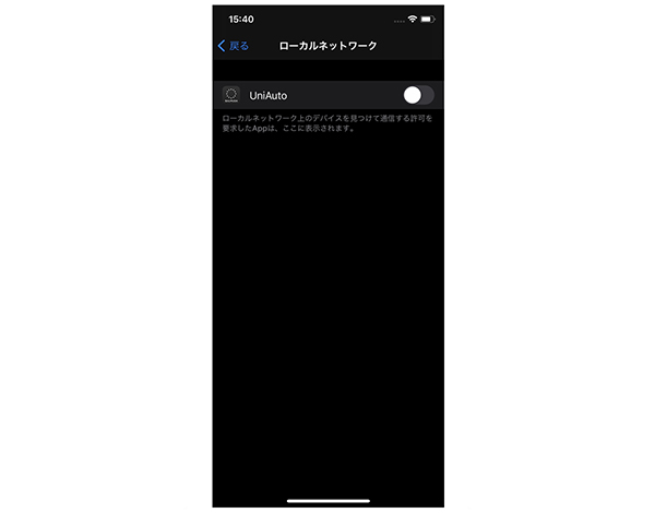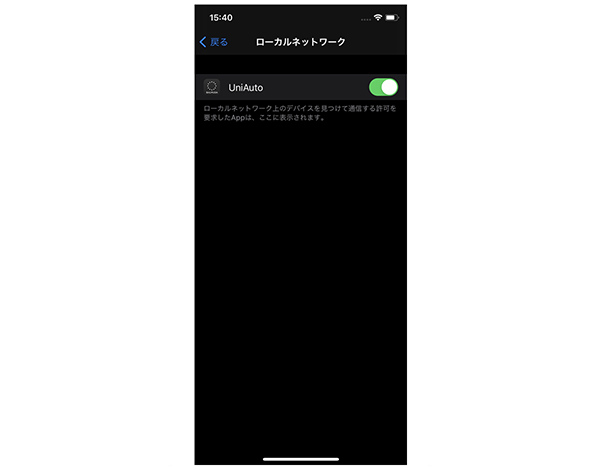 iOS14において、ローカルネットワーク通信の許可をしていない場合、製品の登録が正しく動作しない問題が確認されております。 iOS14の端末をお使いの場合は、iPhoneの設定アプリを開き、[プライバシー] > [ローカルネットワーク] > UniAutoへ許可の操作をしていただき、再度UniAutoアプリを開き、製品の登録操作をしていただくことで本問題は解決します。